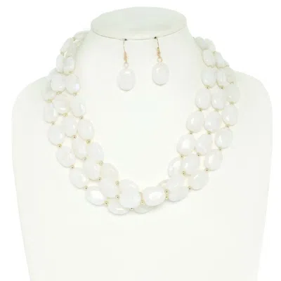 Multi Strand Natural Gemstone Beaded Necklace Set In White