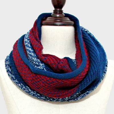 Two Tone Knit Infinity Scarf In Blue