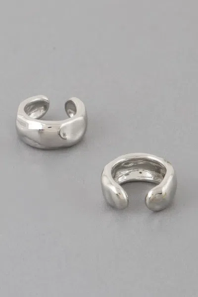 Modern Shiny Ribbed Leaf Drop Earrings In Silver