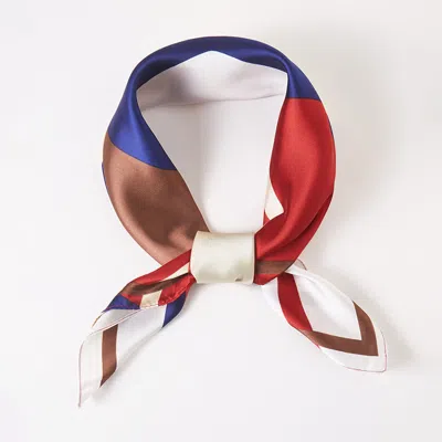 Floral Geometric Pattern Printed Square Silky Satin Bandana Scarf In Brown