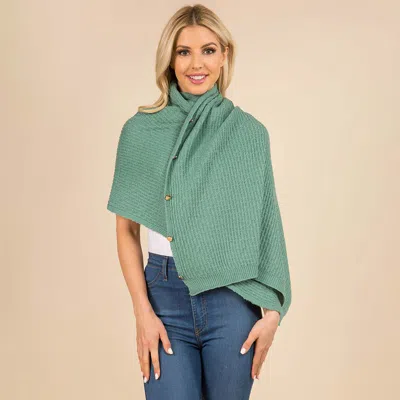 Convertible Button Up Waffle Knit Shawl Cape Poncho In Green