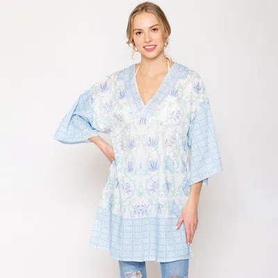 Open Front Fringe Trim Ombre Ruana Poncho In Blue