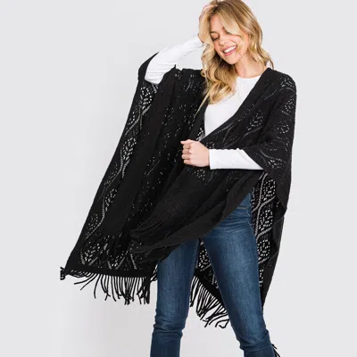 Diamond Pattern Tassel Knit Ruana Poncho In Black