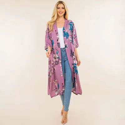 Floral Print Long Kimono Poncho In Blue