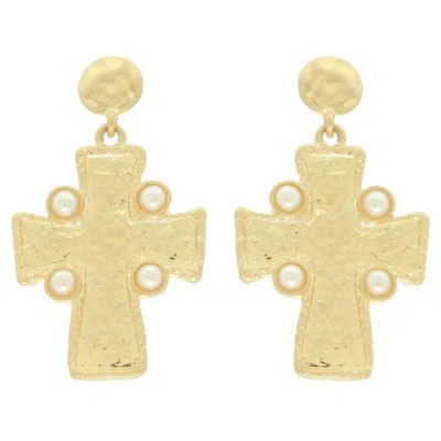 Bezel Jeweled Cross Earrings In Gold