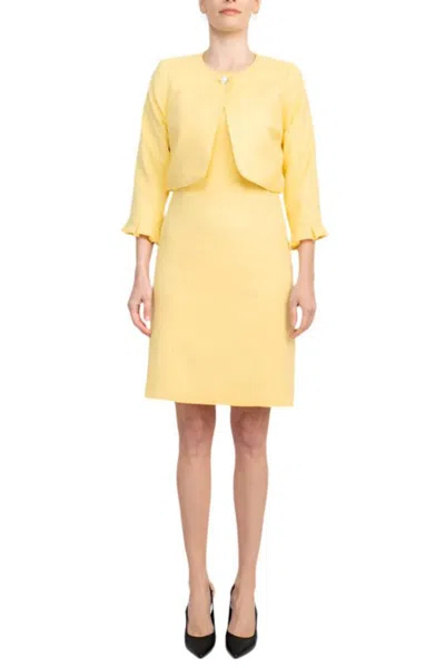 Scoop Neck Sleeveless Short Dress With Matching Crew Neck 3/4 Ruffle Cuff Sleeves Jacket In Yellow