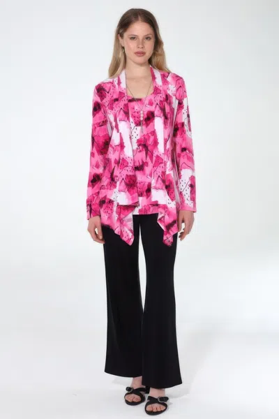 3/4 Sleeve Bolero Open Faced Shrug With Tiered Scallop Details In Pink