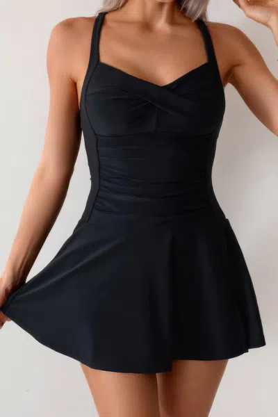 One Piece Ruched Crossover Sleeveless Swimsuit In Black