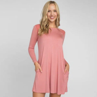 Mesh Shoulder Long Sleeve Dress W/ Pockets In Pink