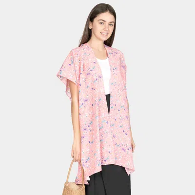 Butterfly Flower Patterned Cover Up Kimono Poncho In Pink