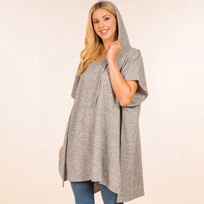 Solid Cozy Hooded Poncho In Gray