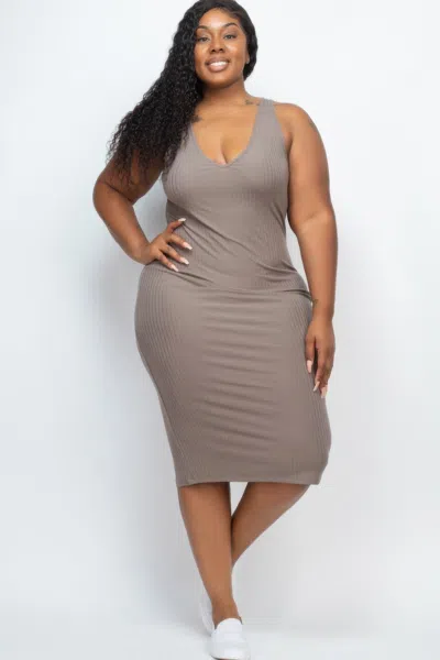 Plus Size Ribbed Sleeveless Bodycon Midi Dress In Brown