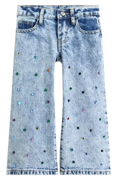 Kids' Bejeweled Wide Leg Jeans In Blue