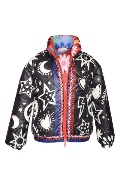 Kids' Reversible Print Quilted Puffer Jacket In Multi