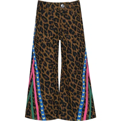 Kids' Taped Leopard Wide Leg Jeans In Brown