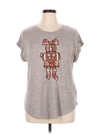 Pre-owned Short Sleeve Top Brown Scoop Neck Tops