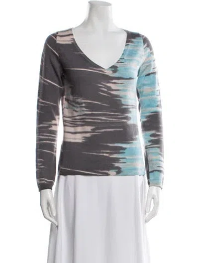 Pre-owned Cashmere Paisley Print Sweater In Gray