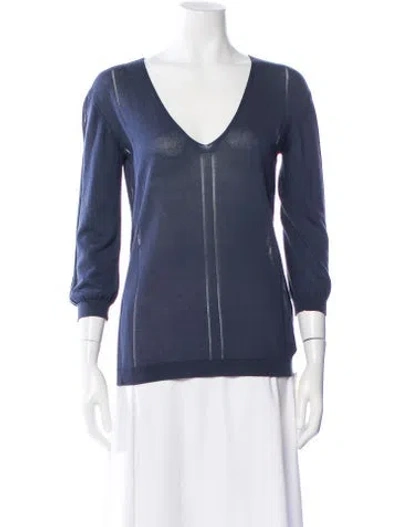 Pre-owned Striped Scoop Neck Sweater In Blue