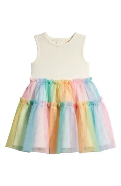Kids' Tiered Rainbow Tutu Dress In Ivory- Pink Multi