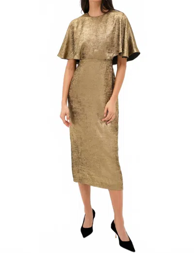 Cape Leah Cap Sleeves Polyester Blend Midi Dress In Gold