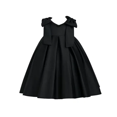 Kids' Black Palermo Satin Bow Pleated Dress