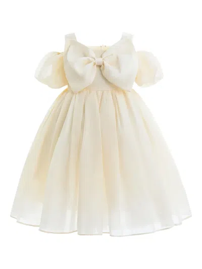 Kids' Ruffle-detail Bow-embellished Party Dress In Neutral
