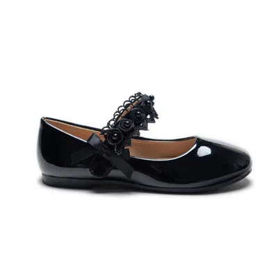 Black Patent Rose Pearl Doily Flats In Multi