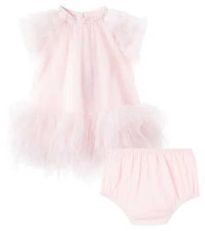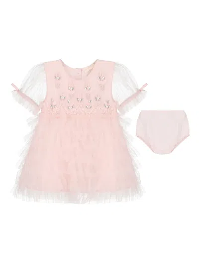 Babies' Embellished Ruffled Tulle Dress Set In Pink