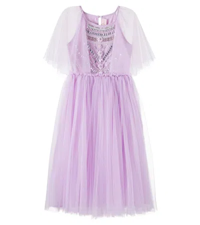 Kids' Daphne Sequin-embellished Tiered Tulle Dress In Pink