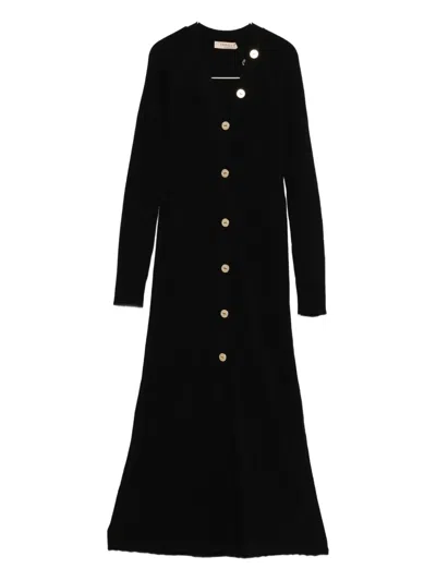 Button-down Ribbed Dress In Black