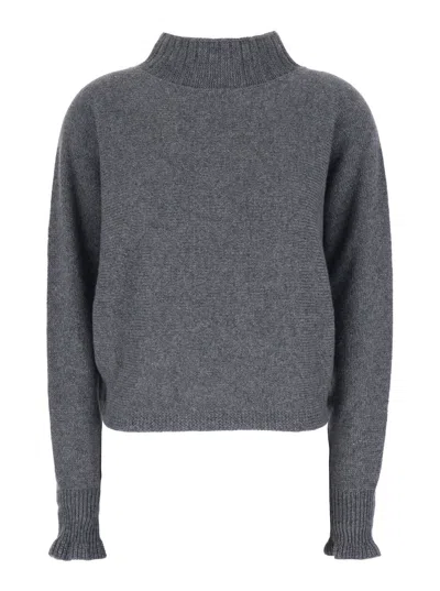 Grey Turtleneck Sweater With Crop Design In Cashmere Woman In Gray