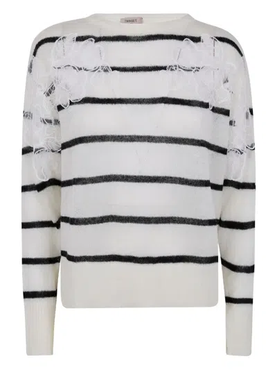 Twin-set Striped Sweatr In White