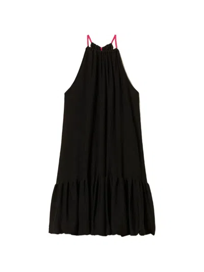 Halterneck Ruffled Dress In Black