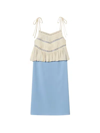 Lace-trim Midi Dress In Blue