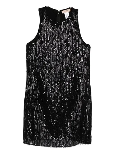 Bow-detail Sequinned-embellished Mini Dress In Black