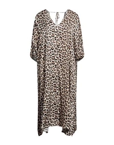 Woman Midi Dress Sand Size 10 Viscose In Beige