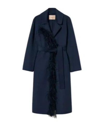 Twin-set Indigo Blue Feather-trim Coat