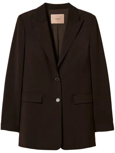Twin-set Cady-texture Cropped Blazers In Blue
