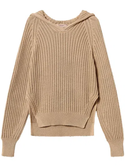 Cut-out Detail Long-sleeve Cardigan In Brown