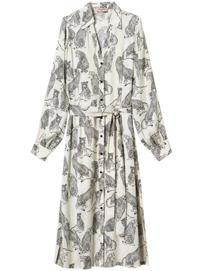 Jaguar-print Midi Shirt Dress In Schwarz