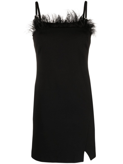 Schmales Minikleid Mit Federbesatz In Black