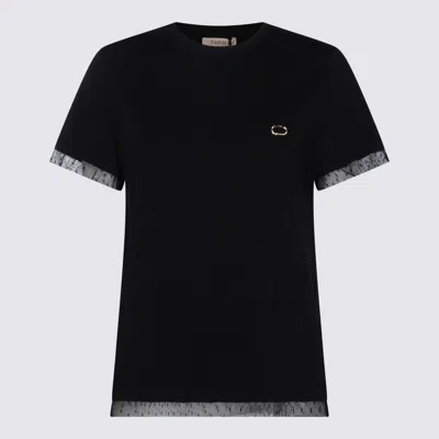 Tulle-trim Cotton T-shirt In Black
