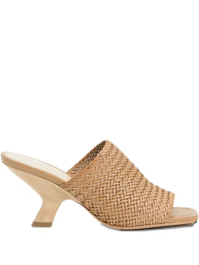 Woven Leather Heeled Sandals In Brown