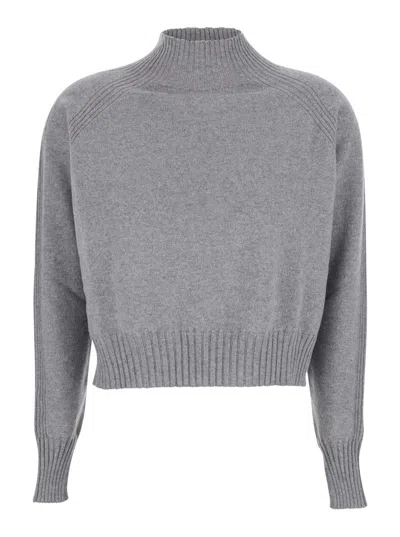 Grey Turtleneck Sweater With Crop Design In Cashmere Woman In Gray