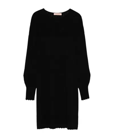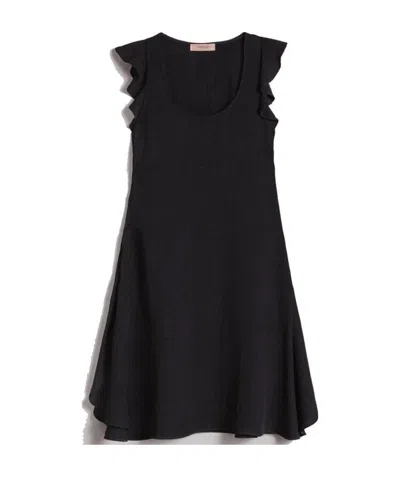 Oval T-shirt Sleeveless Knitted Mid-length Dress In Black