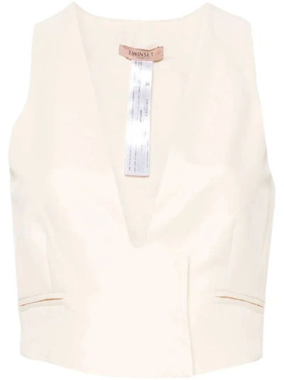 Twin Set Lurex Embroidery Tank Top In Neutral