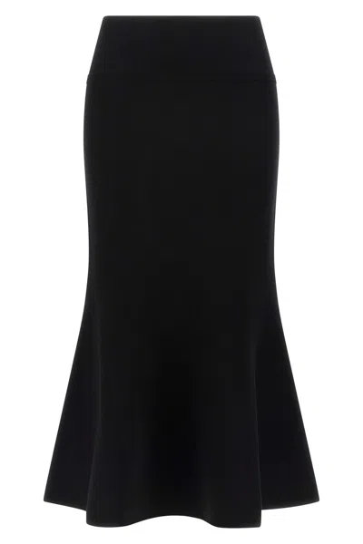 Flared Black Midi Skirt With Elastic Waistband And Metal Logo