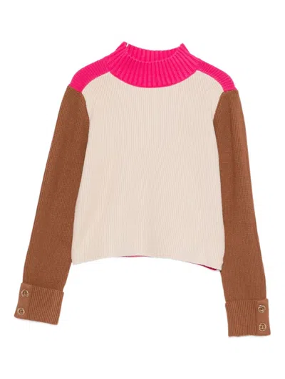 Kids Ribbed Sweater With Color-block Design In Neutral