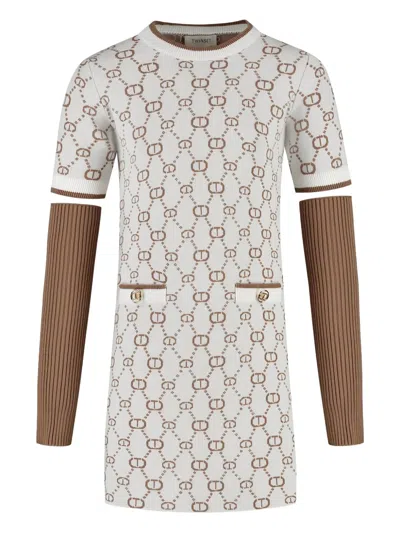 Kids' Monogram-pattern Dress In Neutral