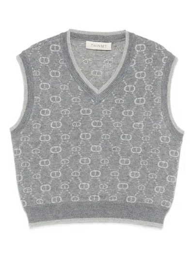 Kids' Oval T Jacquard Knit Vest In Gray